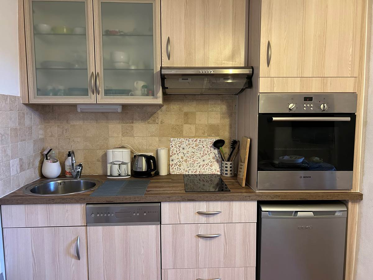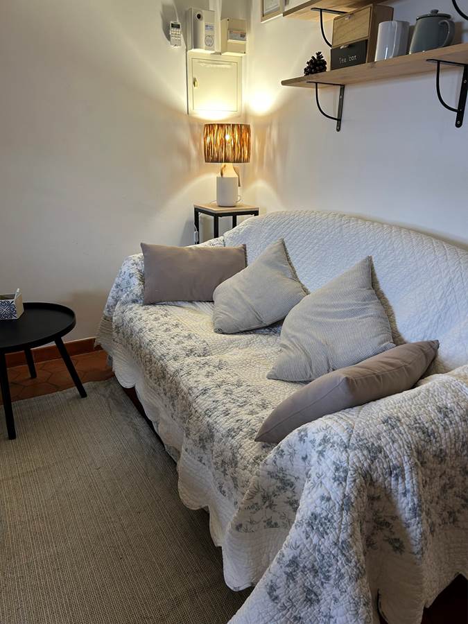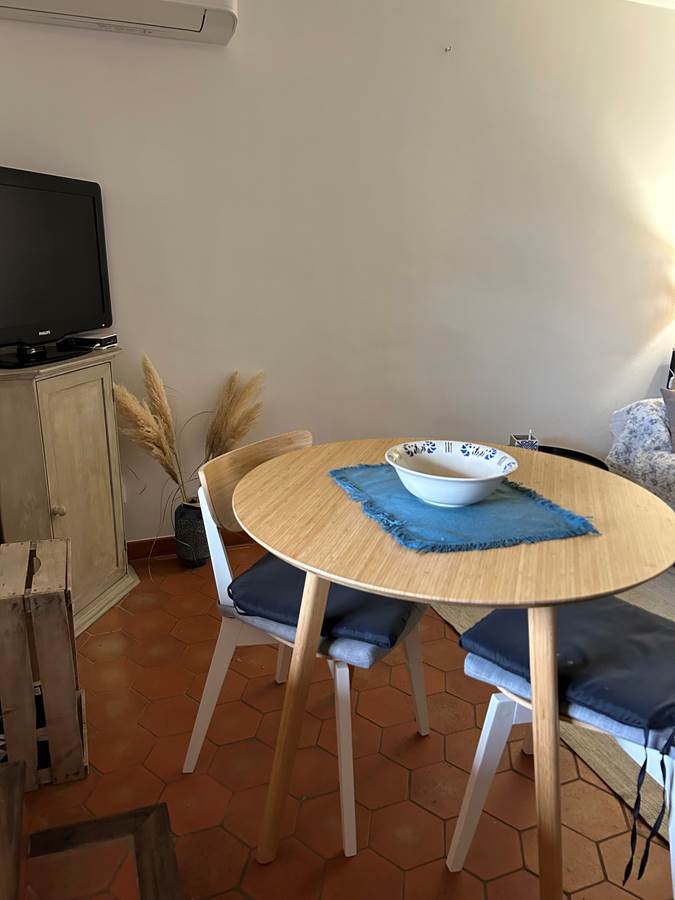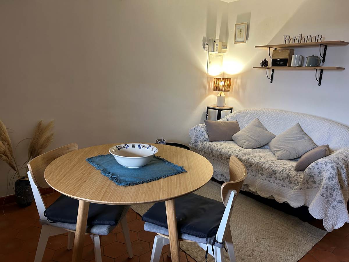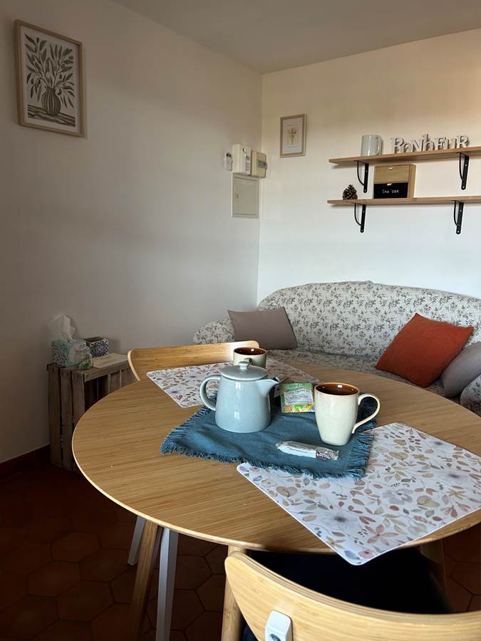 L'appartement de 35 m²se compose d'un salon avec une cuisine équipée d'un frigo avec compartiment congélateur, d'un four, four à micro-onde, lave vaisselle, cafetière à filtre, bouilloire et grille pain. La pièce dispose d'un canapé 2 places et d'une télévision à écran plat (connexion satellite avec chaînes étrangères).