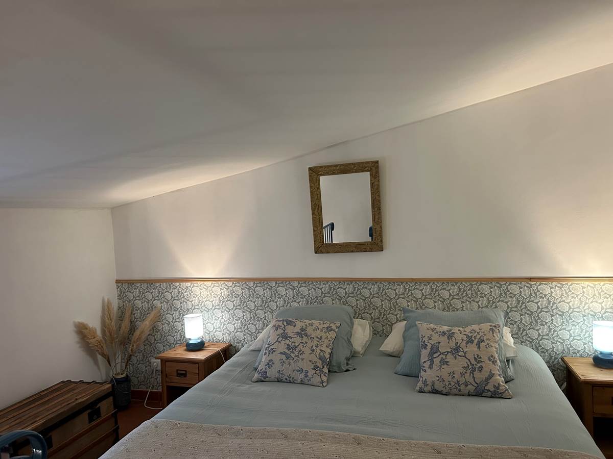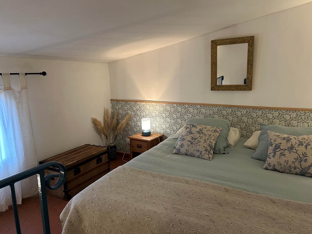 A l'étage, vous disposerez d'une chambre (lit king size 180x190) avec placard.